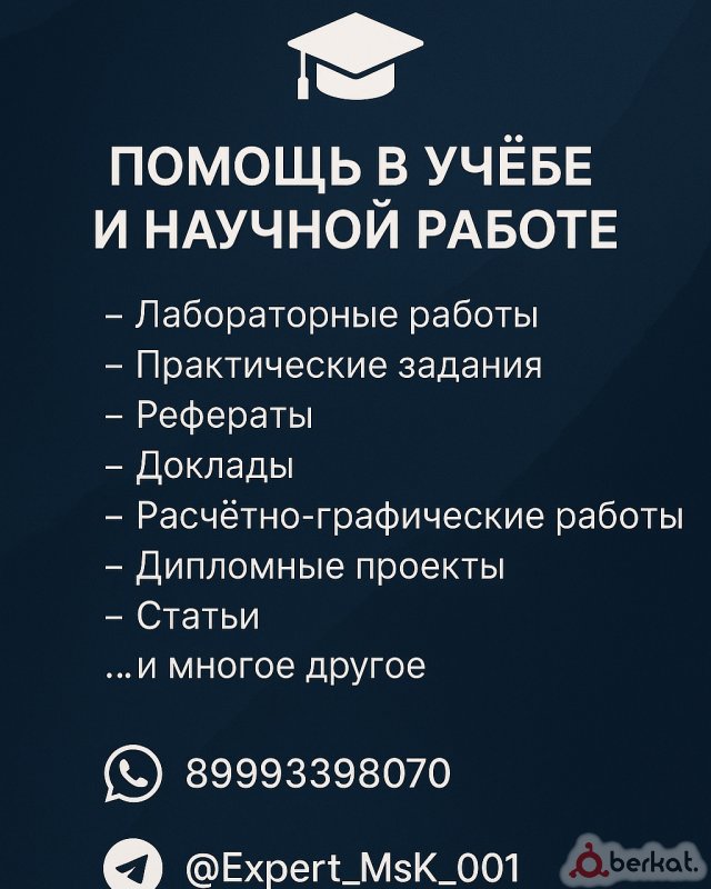 Выполню для вас: ✅ Лабораторные и практические работы ✅ Рефераты, доклады и статьи ✅ Расчётно-графические задания ✅ Курсовые и дипломные проекты ✅ И многое другое под ваши требования ⚡ Гарантия качества и соблюдения сроков. Обращайтесь: WhatsApp: 89993398070 Telegram: @Expert_MsK_001