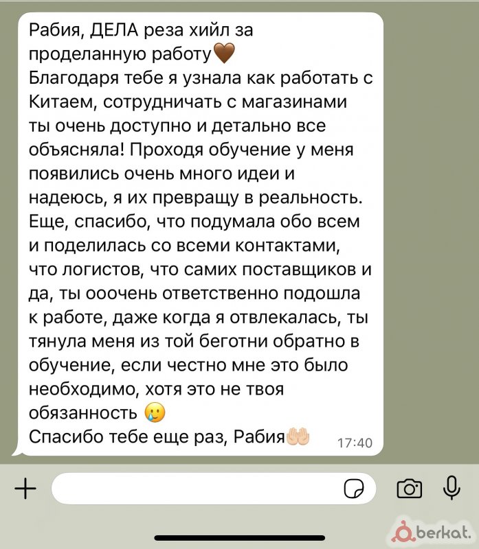 Научу тебя с нуля, не переплачивать и экономить свои деньги Стоимость обучения 10 000₽ Со следующего месяца обучение будет стоить 15 000₽ Девочки, 4 декабря начнется групповое обучение Места ограничены‼️‼️ Еще никто не вел Обучение с улиц и рынков Гуанчжоу, я буду первая Девочки, успейте забронировать место, после того как наберется группа, никого принимать не буду Я обучаю закупкам из Китая с нуля: начиная с регистрации и заканчивая вашим первым закупом. В программе — методы работы через посредника и самовыкуп. Вы получите доступ к обширной базе поставщиков в WeChat. Являюсь представителем карго 797, что позволяет мне эффективно организовывать логистику и обеспечивать надежную доставку