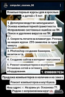 Компьютерные курсы. для взрослых и детей. Для мужчин и женщин раздельное обучение. 23 года опыт работы! Информация на фото. Продажа и ремонт компьютеров и ноутбуков.