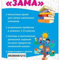 Подготовим вашего ребёнка к школе, а также поможем в выполнении домашнего задания. Подтянем по всем предметам начальных классов. Исправим почерк и улучшим каллиграфию. Наш адрес: 105 Массив, ул Новая 27. Телефон для связи: 8(938)-006-12-13
